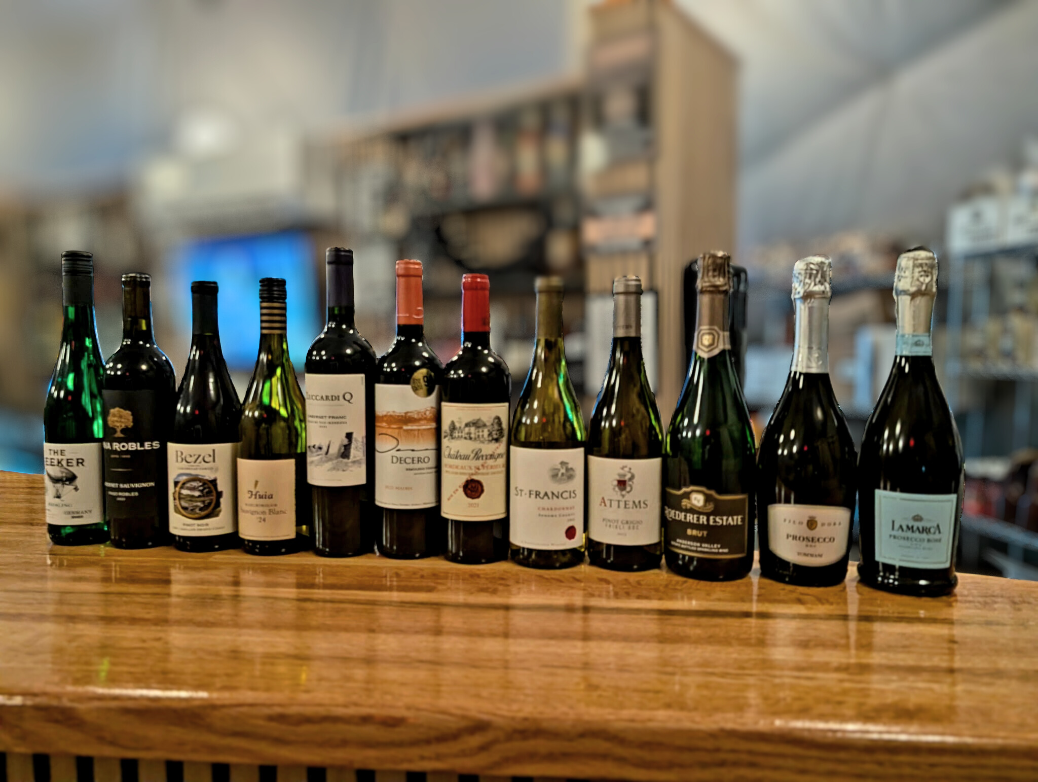 With fresh flowers, a bottle of wine or sparkling cider, and gourmet treats